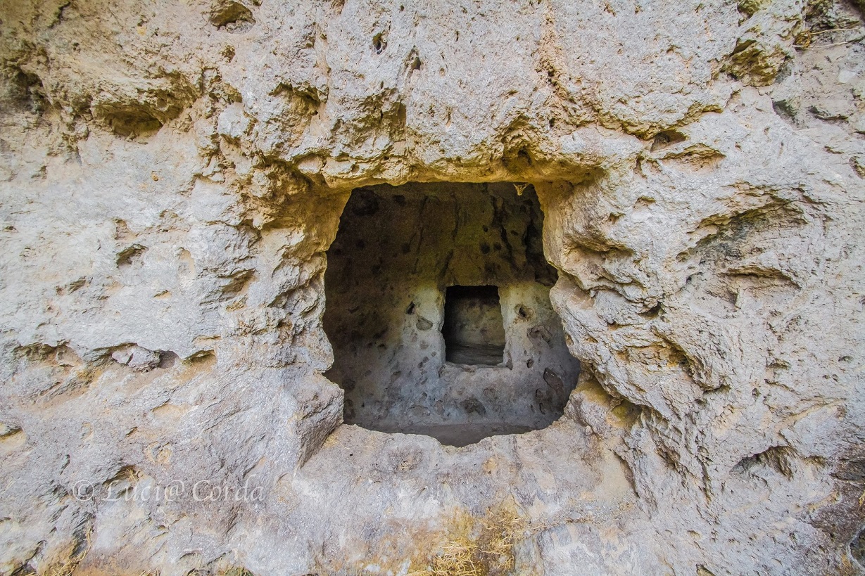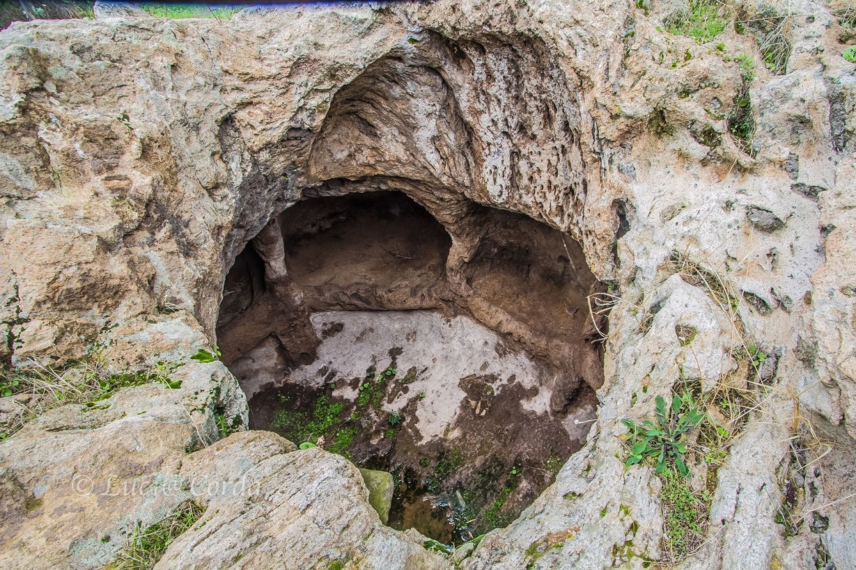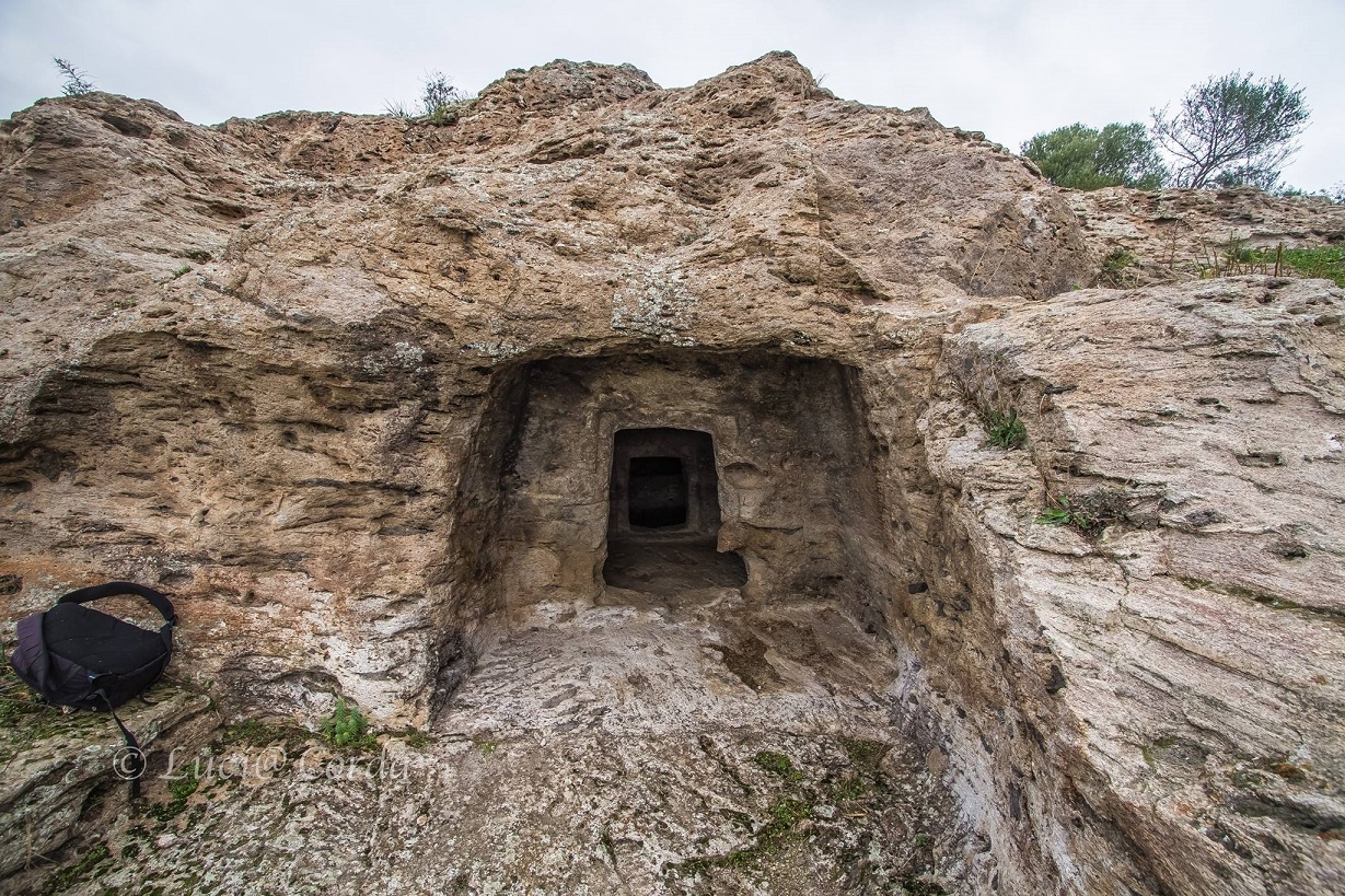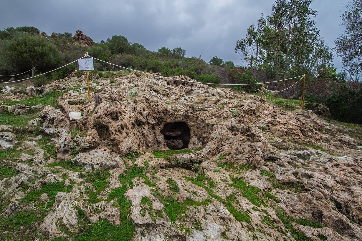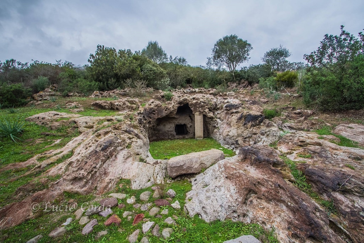 Sulla sommità del colle in cui è situata la necropoli è presente un nuraghe monotorre, edificato in epoche nuragica, e alcuni edifici risalenti alla seconda guerra mondiale. (Wikipedia)