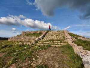 Non esiste relazione diretta, eppure è identico ai coevi templi mesopotamici e incarna il credo ‘orientaleggiante’ di unione tra cielo e terra: le aree sacre in cima a rilievi erano considerate punto d’incontro tra uomo e divinità. Il tempio di monte d’Accoddi , risalente a cinquemila anni fa, è uno ziqqurat unico in Europa per singolarità di tipologie architettoniche. Fu scoperto a metà del XX secolo, scavando un piccolo colle che pareva ‘artificiale’ al centro di una pianura.
