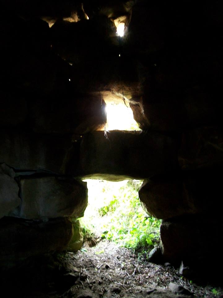 Una volta che “strisciando” ci si è inoltrati all’interno, la tomba si manifesta in tutta la sua bellezza: colonna, protomi in bassorilievo, celle, anticelle, porta dell’aldilà, simboli e segni di una devozione arcaica che ci inebriano anima e spirito.