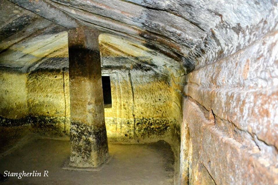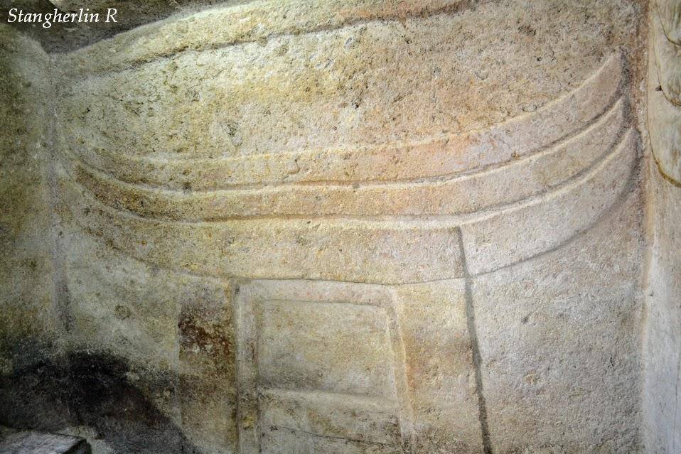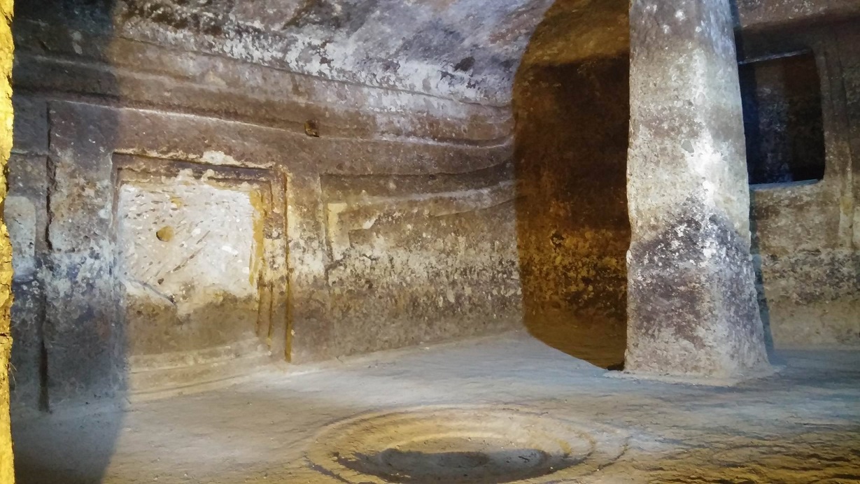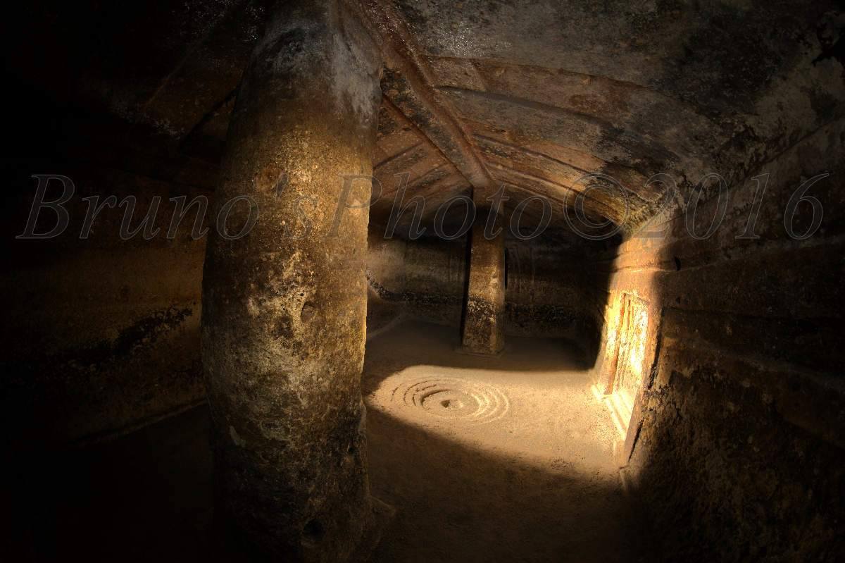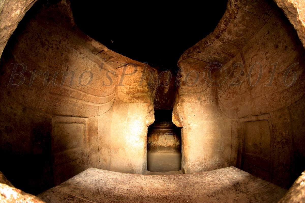 La domus, il cui ingresso è preceduto da un lungo corridoio, il dromos, ha sezione planimetrica a T: è formato da una piccola anticella quadrangolare che, attraverso un portello, immette in un ampio vano rettangolare; qui, nelle pareti laterali si aprono due cellette.