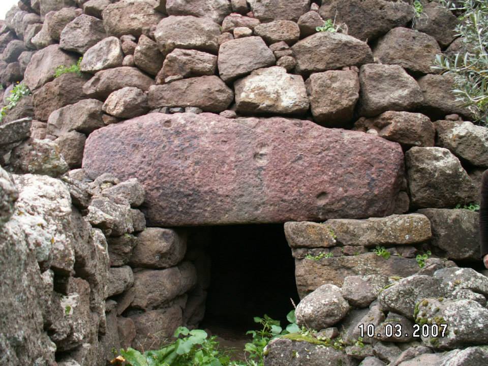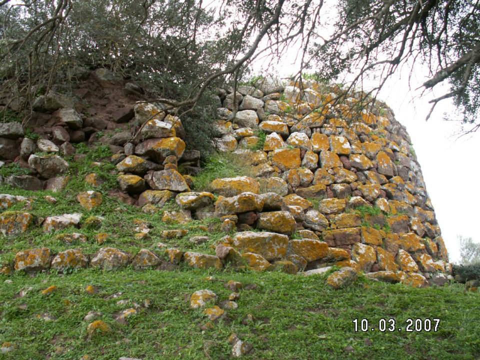 Nuraghe diroccato e avvolto da fichi d’india e vegetazione. Conserva il bel portale d’ingresso, la tholos e la scale verso il piano superiore.