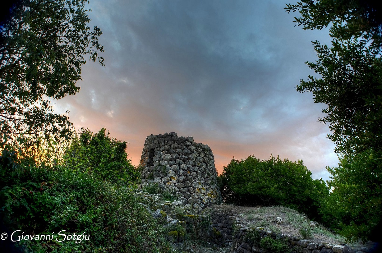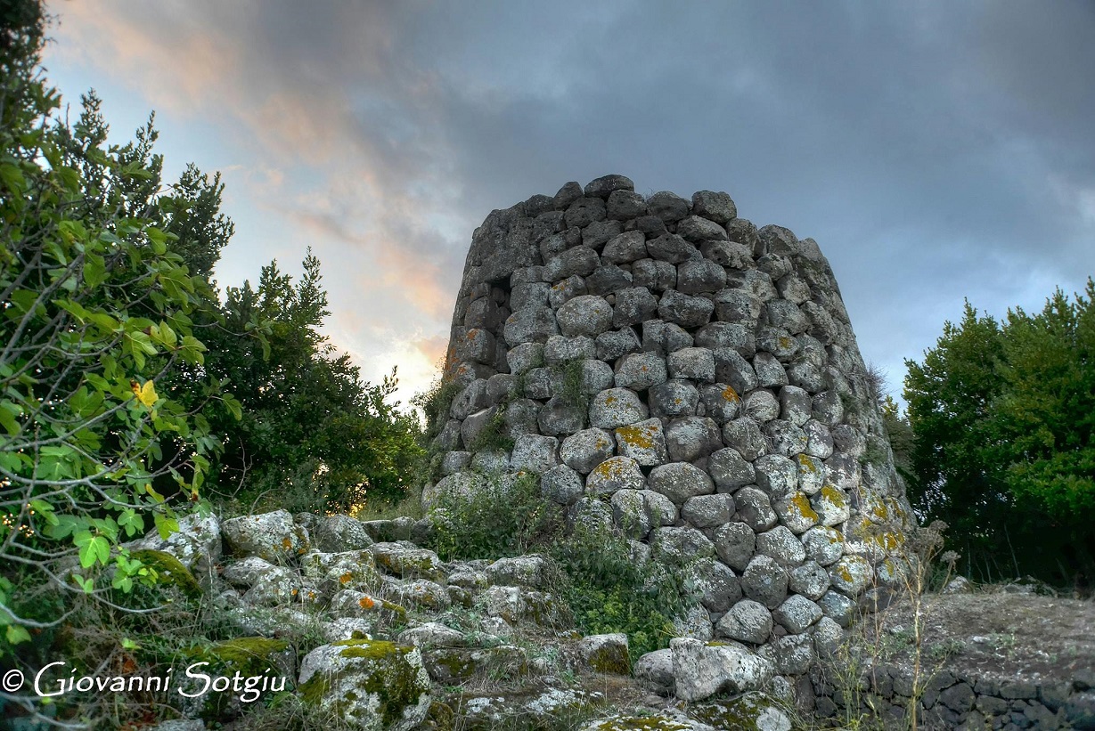 Il nuraghe è una struttura complessa, costituita da una torre principale a lato della quale, in momenti successivi, furono addossate due torri raccordate da una cortina muraria rettilinea. La torre principale, costruita con blocchi di basalto ben lavorati (soprattutto nelle strutture superiori) e disposti su filari regolari, presenta l’ingresso a nord-est, sormontato da un architrave con finestrino di scarico e sopraelevato rispetto al livello di campagna.