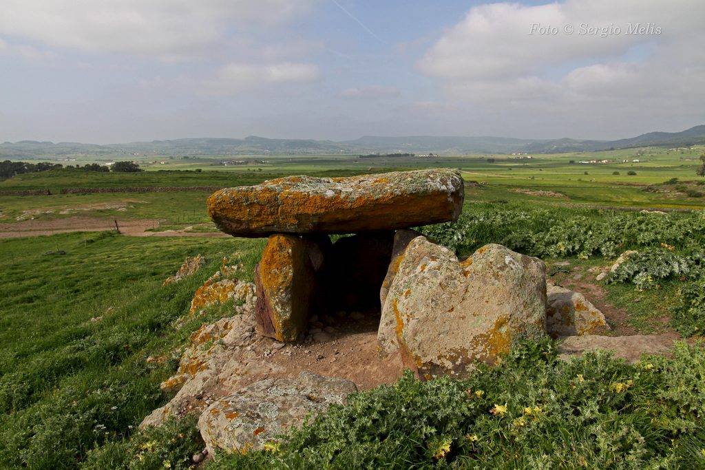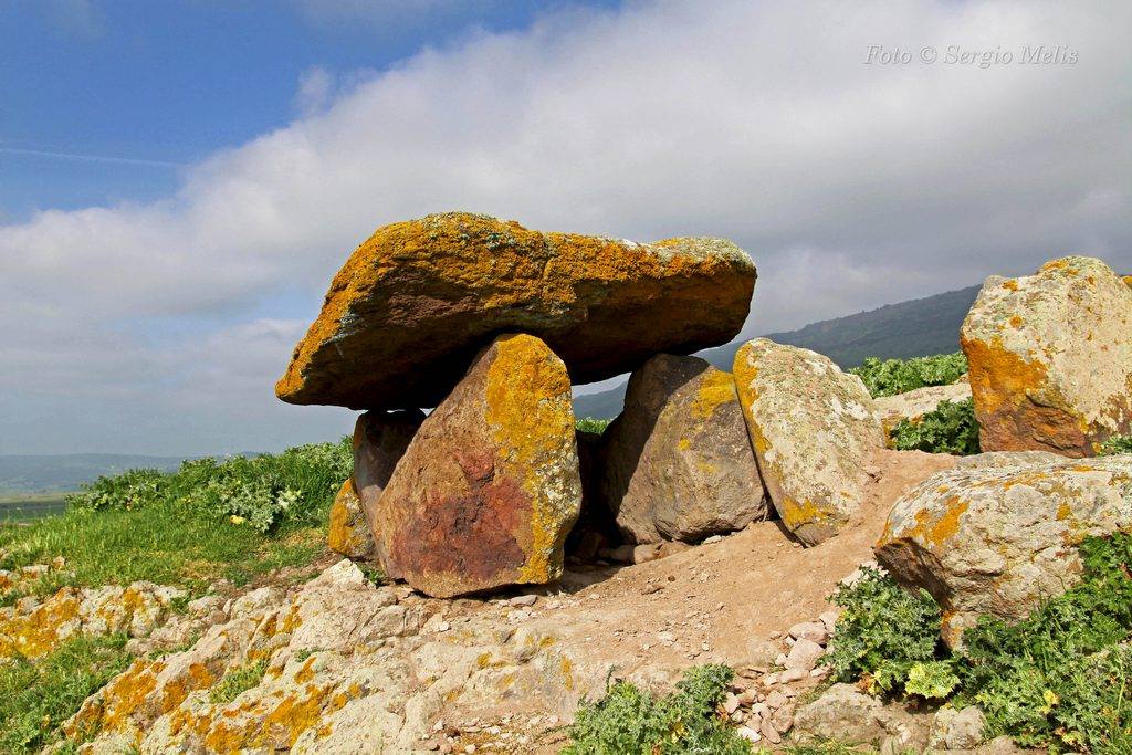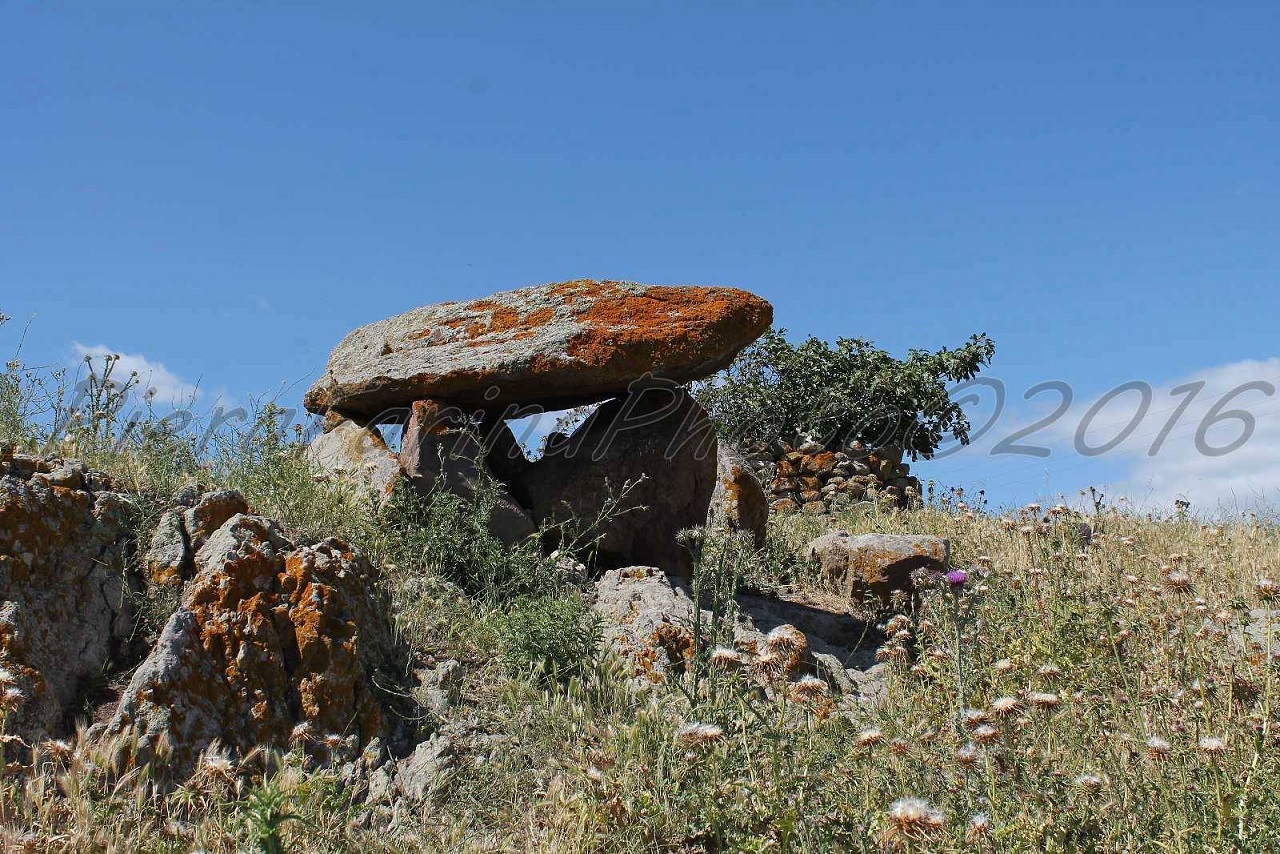 Dolmen costituito da grande lastrone di copertura sostenuto da tre ortostati verticali