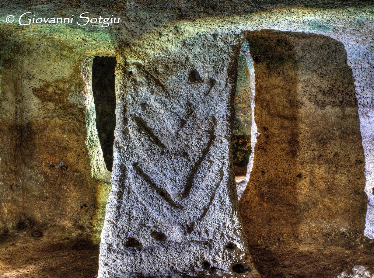 La necropoli, situata lungo le pendici meridionali del Monte Corona ‘e Teula è formata da 11 domus de janas che si caratterizzano per la complessità degli impianti planimetrici e per gli schemi decorativi.