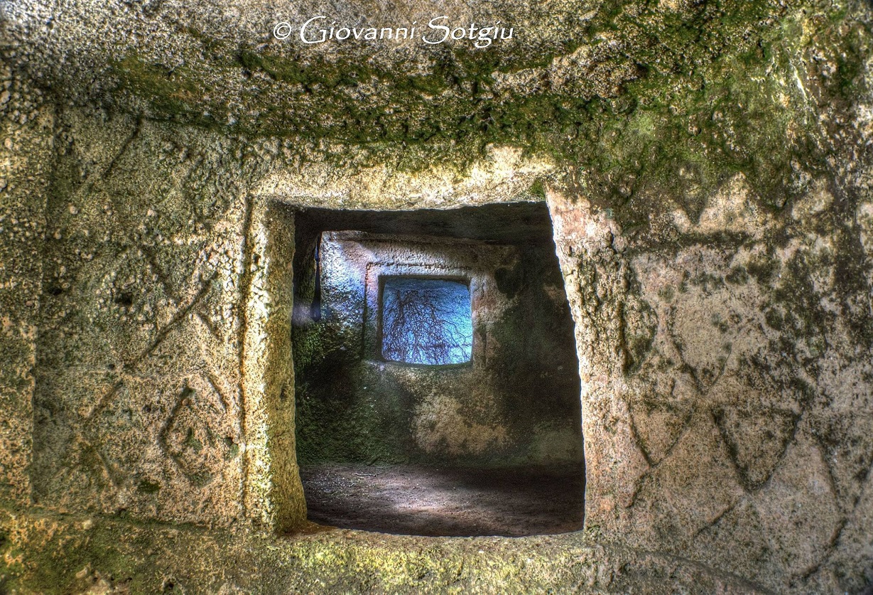 Tre Domus de Janas realizzate su costone di calcare, monocellulari, successivamente decorate con la stele a prospetto scolpita nella roccia