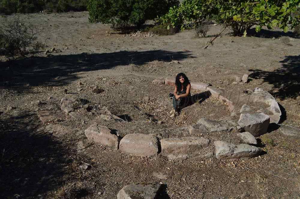 Si presenta con capanne rituali circolari, dove sono evidenziati, lungo tutta la circonferenza interna, dei sedili. Numerosissimi conci parallelepipedi di basalto e tufo trachitico a T popolano l’intero sito; essi sono perfettamente lavorati e rifiniti. In un flashback improvviso ciò mi riporta ad altri santuari sardi, come, per esempio, Gremanu (a Fonni), Serra Niedda (a Sorso) e Santa Vittoria (a Serri); appare chiaro, per l’appunto, che il tipo di pietra usata (basalto e tufo trachitico) e la foggia dei conci risulti simile in tutti i santuari nuragici sparsi nell’intera isola. Questo di Nughedu San Nicolò rimane, però, unico nel suo genere, grazie alla testimonianza scultorea giunta sino a noi dalla notte dei tempi e custodita nel locale museo. Trattasi di una elegantissima e raffinata testa bovina in trachite “nera” che, ancora una volta, ci testimonia non solo l’abile maestria degli scalpellini del passato, ma anche la devozione di questo nostro popolo al dio Toro