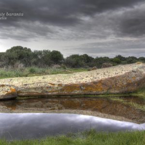 Si presenta con capanne rituali circolari, dove sono evidenziati, lungo tutta la circonferenza interna, dei sedili. Numerosissimi conci parallelepipedi di basalto e tufo trachitico a T popolano l’intero sito; essi sono perfettamente lavorati e rifiniti. In un flashback improvviso ciò mi riporta ad altri santuari sardi, come, per esempio, Gremanu (a Fonni), Serra Niedda (a Sorso) e Santa Vittoria (a Serri); appare chiaro, per l’appunto, che il tipo di pietra usata (basalto e tufo trachitico) e la foggia dei conci risulti simile in tutti i santuari nuragici sparsi nell’intera isola. Questo di Nughedu San Nicolò rimane, però, unico nel suo genere, grazie alla testimonianza scultorea giunta sino a noi dalla notte dei tempi e custodita nel locale museo. Trattasi di una elegantissima e raffinata testa bovina in trachite “nera” che, ancora una volta, ci testimonia non solo l’abile maestria degli scalpellini del passato, ma anche la devozione di questo nostro popolo al dio Toro