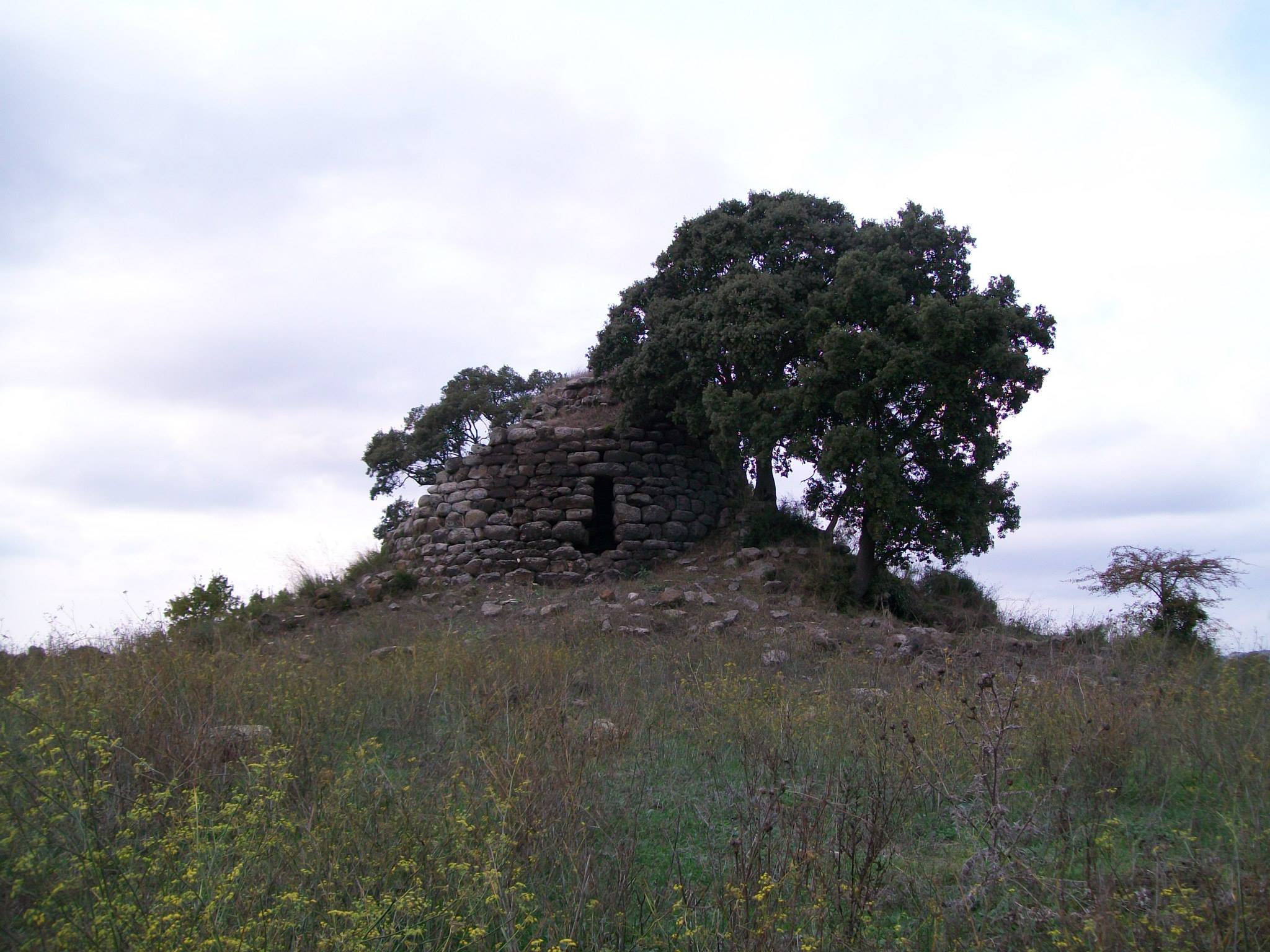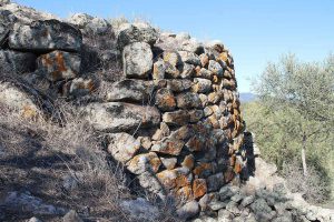 Il nuraghe, entro il quale è cresciuto un albero di fico (con esiti spettacolari e nel contempo critici per la struttura), conserva pochi filari trachitici ma denuncia un’originaria pregevole architettura. Il diametro è attorno agli undici metri e si conserva un alzato massimo di sette filari, per un’altezza di quattro metri e mezzo. Ben visibile l’ingresso, orientato a Sud-Est. Possiamo supporre che originariamente l’altezza complessiva raggiungesse almeno una decina dl metri: una misura superiore sarebbe da ipotizzare nel caso, ormai non più verificabile, dell’esistenza di più camere sovrapposte.