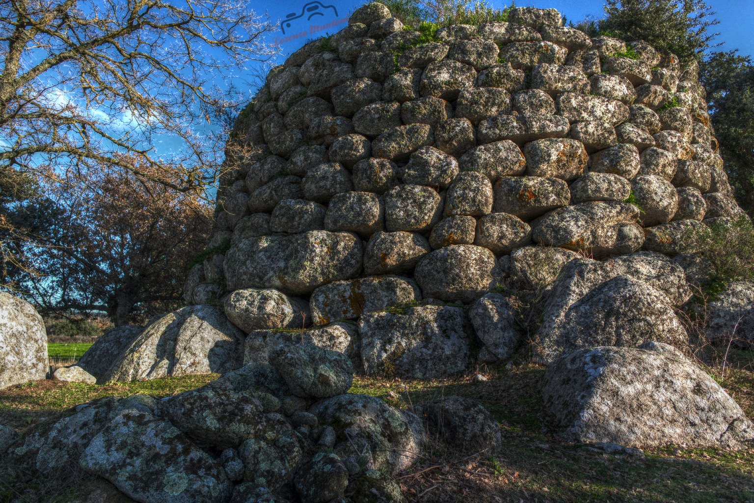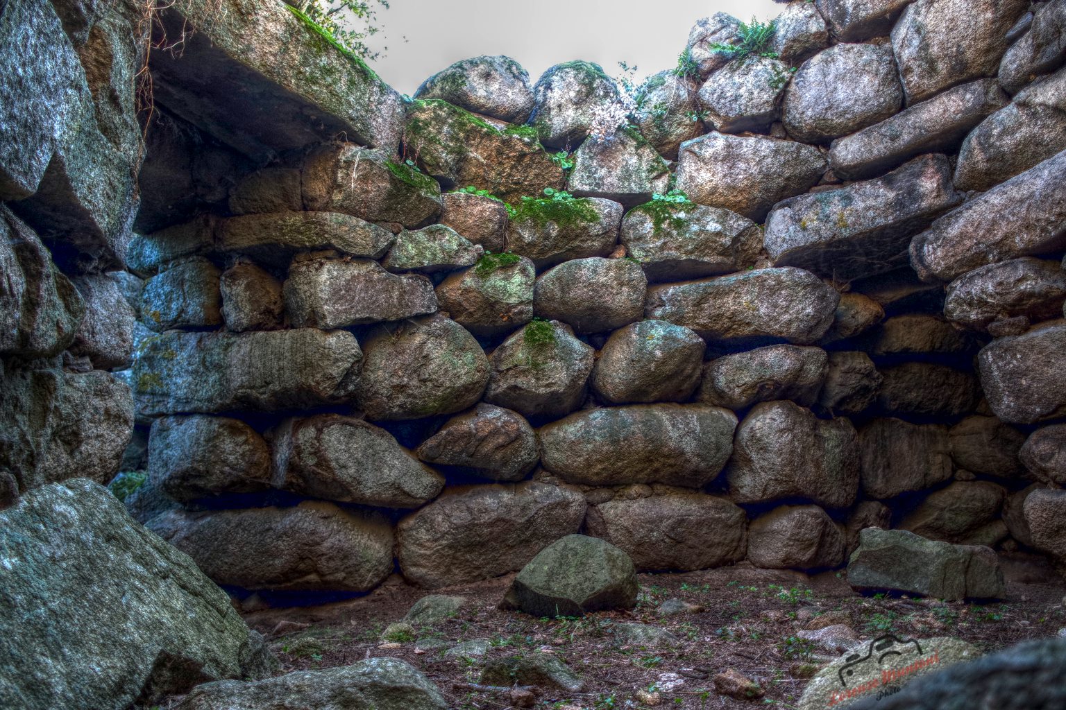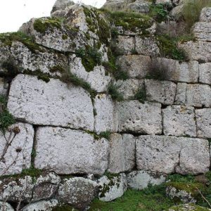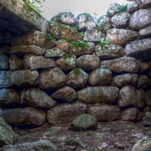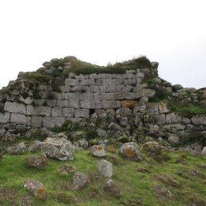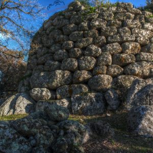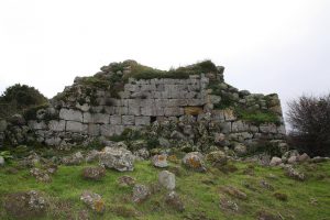 nuraghe quadrilobato Alvu, costruito in pietre bianche squadrate, con attorno numerose basi di capanne. Presenta particolari costruttivi nell’incastro delle murature d’angolo non riscontrabili in altri nuraghi
