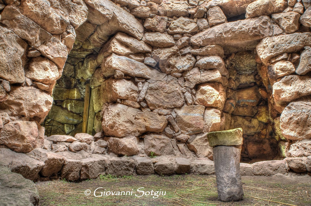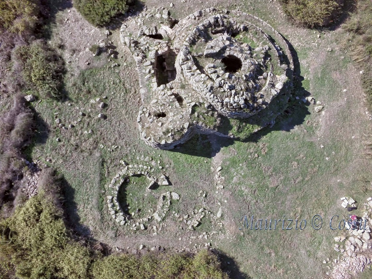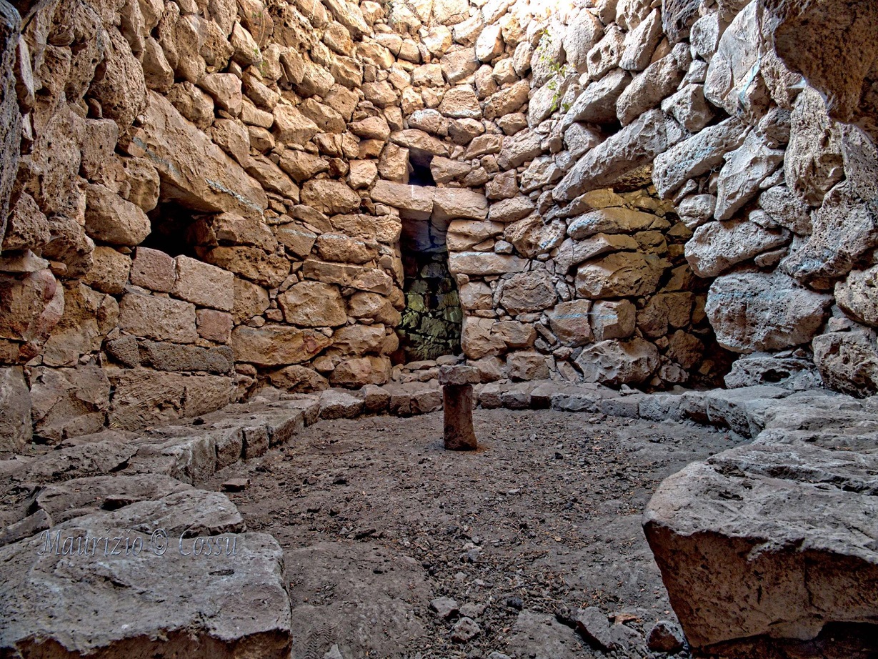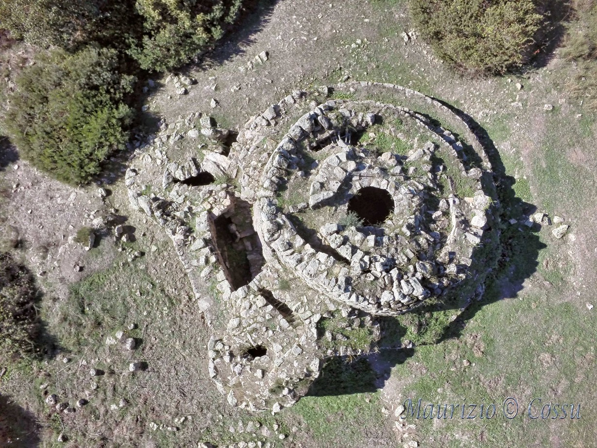 La torre principale (diam. m 18,00) presenta l”ingresso orientato a SE (largh. m 0,80-1,20) sormontato da un architrave con finestrino di scarico.