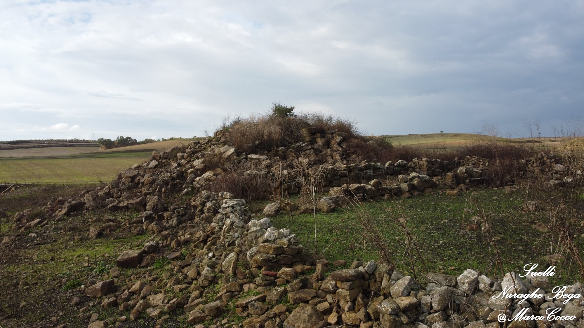 Il Nuraghe Bega è sito a circa 600 m a Est dal Nuraghe Piscu in territorio di Suelli. Venne costruito su un leggero rialzo della valletta di Bega ai piedi di un costone marnoso detto S’Ollasteddu. Il grande ammasso di rovine fà pensare a un nuraghe di grandi dimensioni di cui, oggi, sono leggibili solo alcuni filari di una torre del diametro di circa 12 metri (La Trexenta Antica di Silvestro Ghiani)
