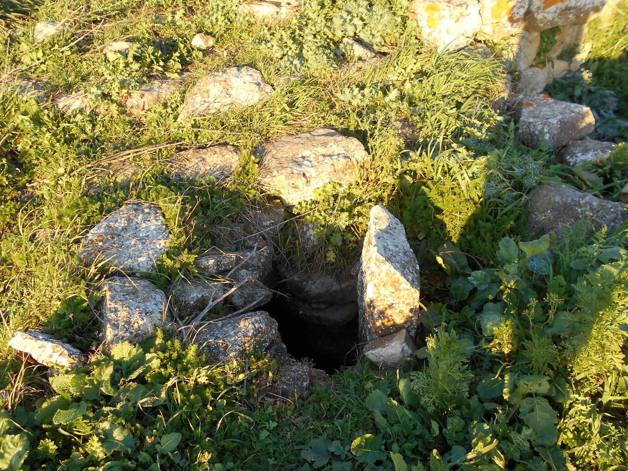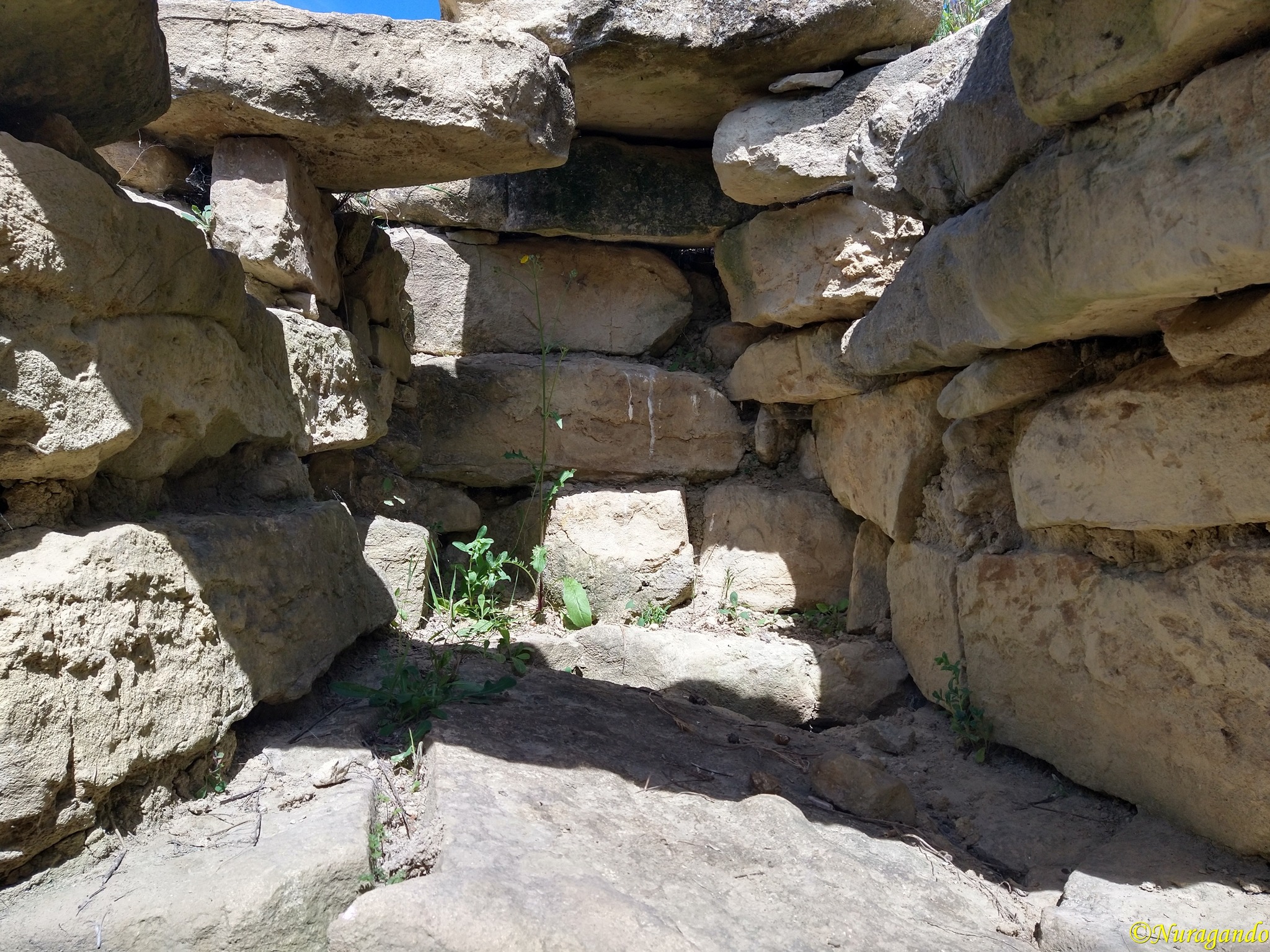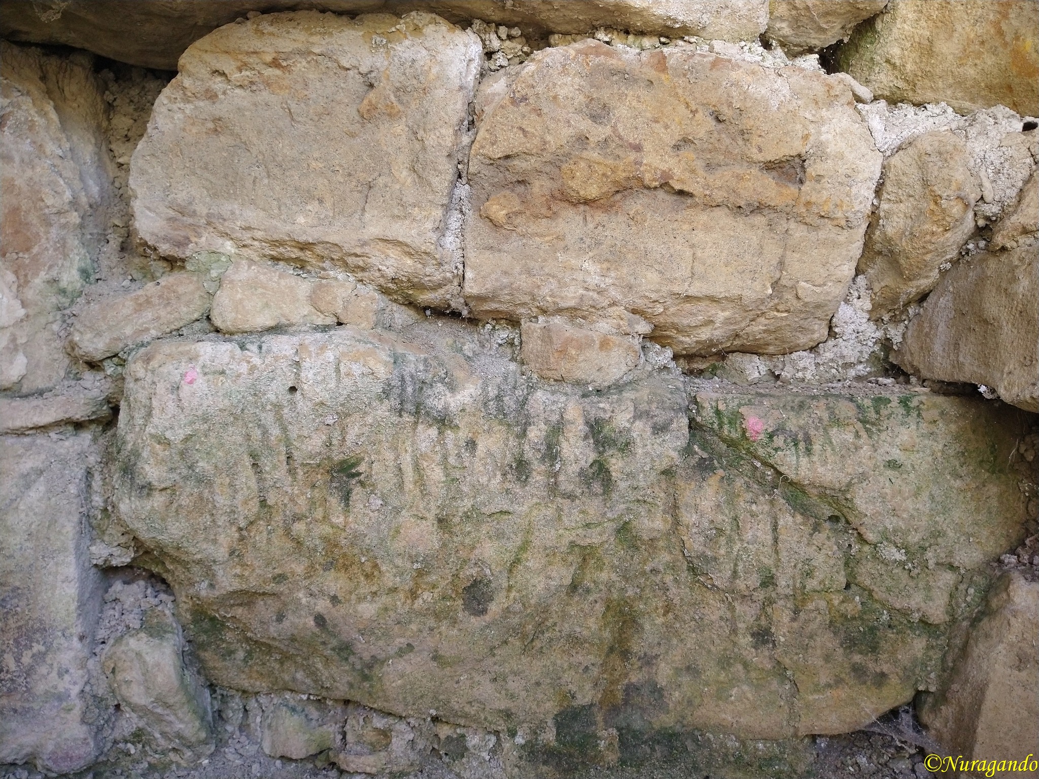 Che si tratti di un polilobato lo si vede da muri di collegamento che si diramano dalla torre centrale; ma la vegetazione e la terra rendono illeggibile la planimetria. E’ realizzato con enormi blocchi di marna. Sul lato ovest possiamo ammirare i filari perfettamente circolari, con blocchi lavorati e adattati proprio per ottenere queste curvature perfette.