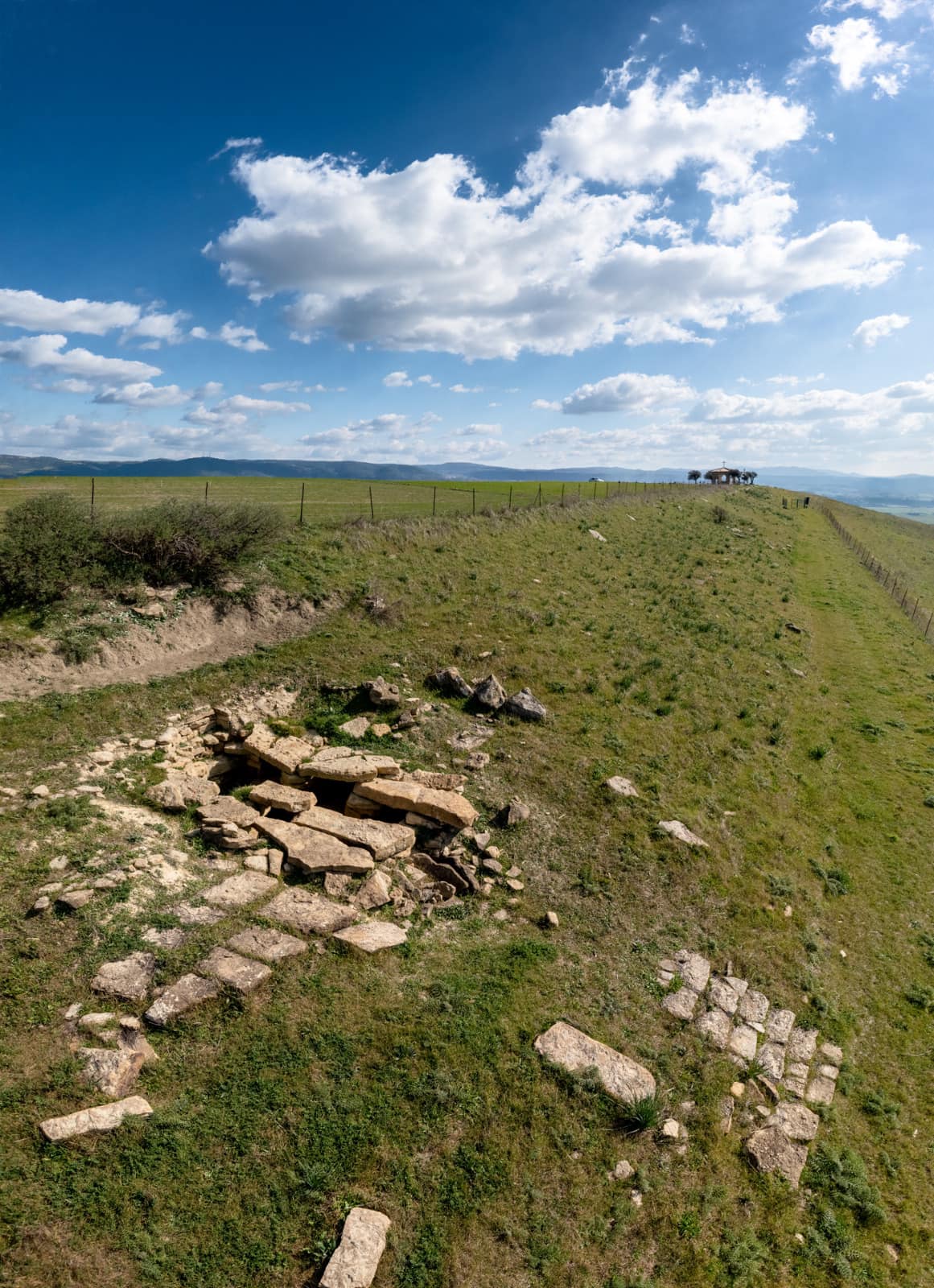 L’eccezionalità del sito di Pranu Siara è in particolare riferita al fatto che la tomba non risulta isolata ma fa parte di una estesa necropoli perfettamente allineata per qualche centinaio di metri e sormontato, in corrispondenza del salto di quota, da una sorta di cinta fortificata che sembra configurarsi a protezione del pianoro, secondo modelli insediativi di consimili documentati nell’area nord occidentale dell’isola, nelle zone di Olmedo e Castelsardo.