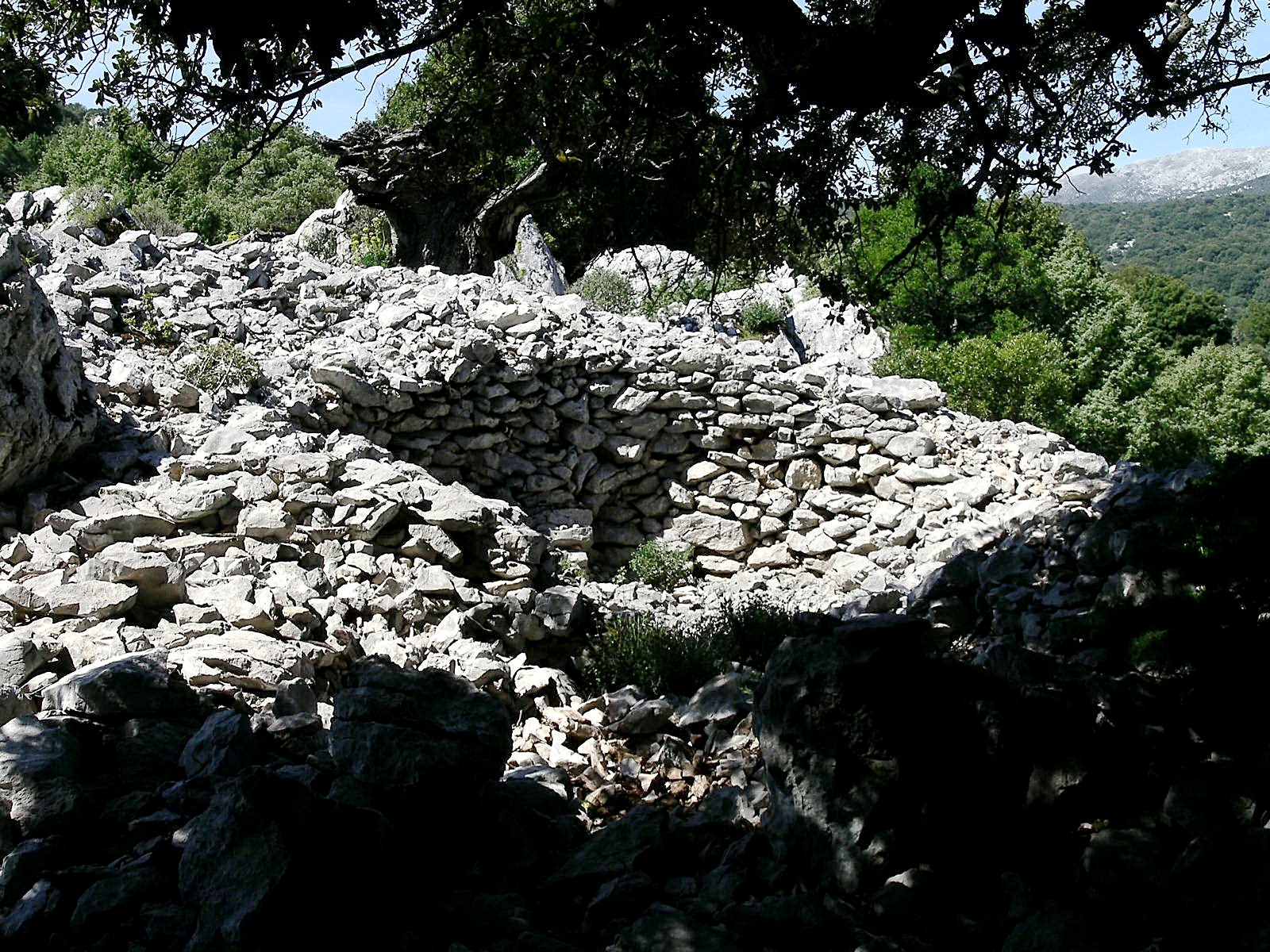 L’assenza di monumenti funerari induce ad ipotizzare che i defunti venissero tumulati nelle grotte scavate a valle nella Codula di Luna.