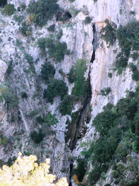 Cascata alta 50mt, è l’uscita della grotta Donini, meta torrentistica rarissima nel suo genere(una decina di percorsi simili in tutto il mondo) e perciò assai ambita dai praticanti di canyoning. L’ingresso della grotta si trova più a monte, in uno stretto pertugio nel letto della codula Orbisi.